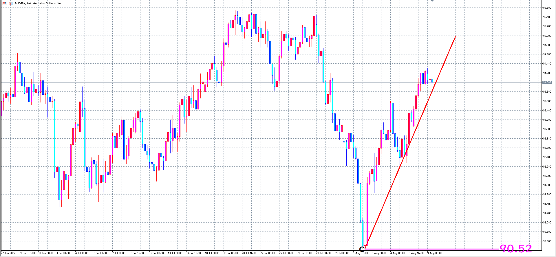 豪ドル円の4時間足チャートです(‘ω’)ノ