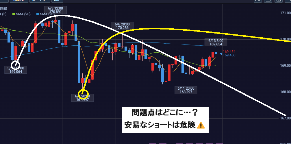 なので黄色のシナリオであれば、まだ170.28超えの高値更新があってもおかしくない状況です。
