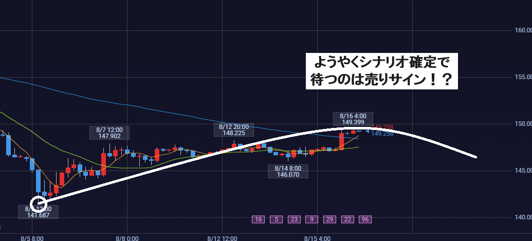 また天井を疑う時間帯でもありますので日足で上ひげ完成した場合、4HC天井の可能性が高まります。