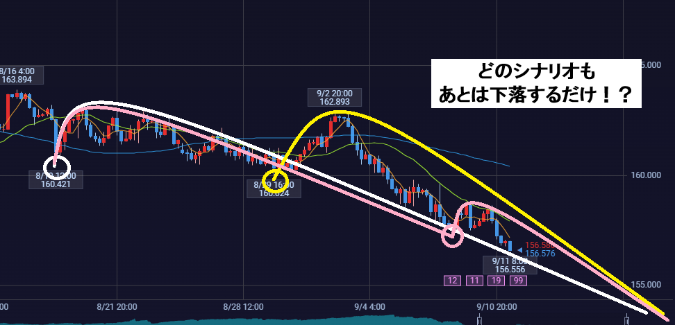 今日明日にボトムをつけなければこのシナリオの可能性は無くなります。
