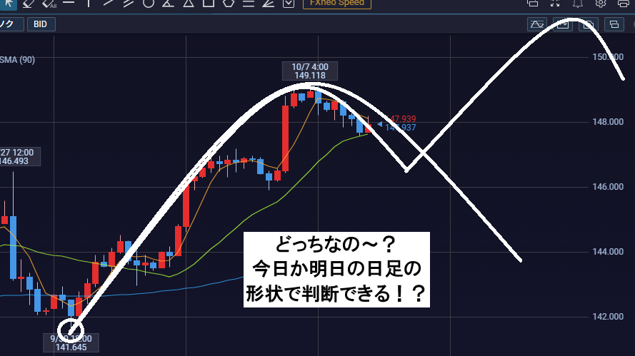 ただこの下落が4HCが天井をつけた後のボトムに向けた下落なのか、単なる押し目をつけにいく下落なのか判断が難しい状況です。