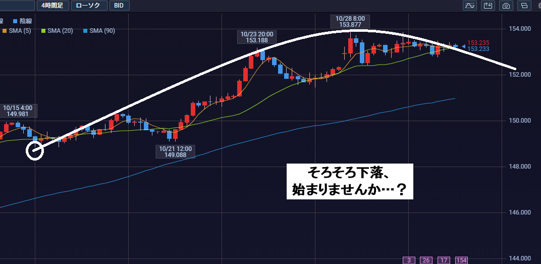 既にボトムの時間帯に入っていて、ボトムの水準は現状で152.40です。