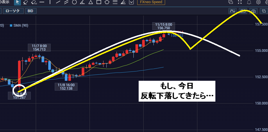 なので今日反転下落した場合、それがどちらの下落なのか判断が難しいので注意して見ていく必要があります。