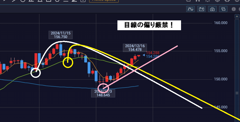 60本目・・・起点148.64で直近高値58本目154.47
