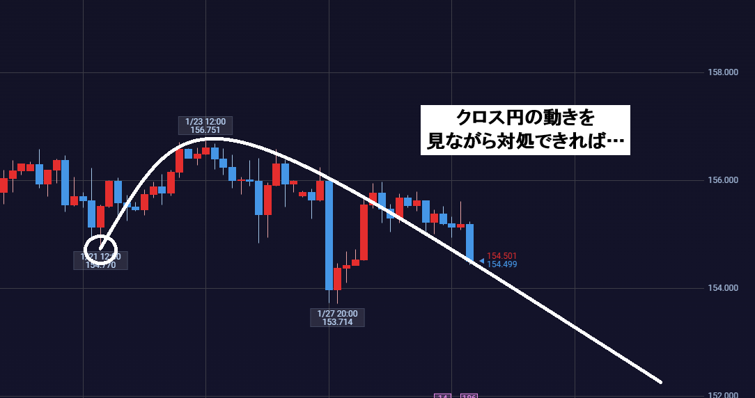 ただし、ドル円がクロス円に先行して4HC起点割れを起こしているという見方もできますので注意が必要です。
