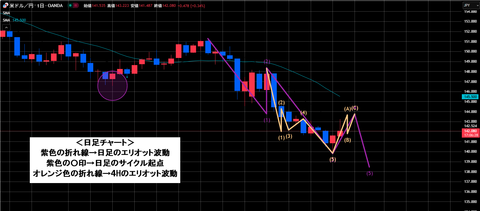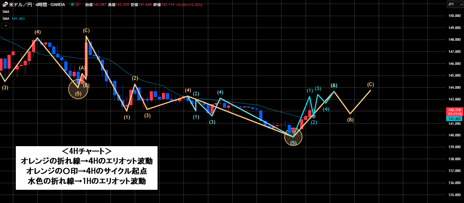 6本目・・・起点139.88で昨日つけた安値が起点のシナリオです。