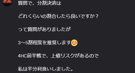 そして、半分分割決済で利食いの流れでトレード中です。