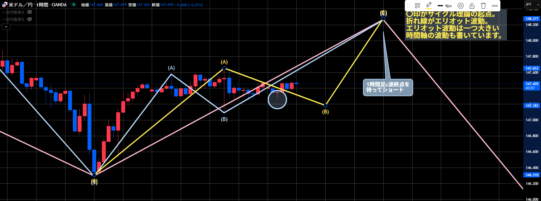 a波の終点を147.57で見ていますが、その少し先の147.64がa波終点の可能性があります。