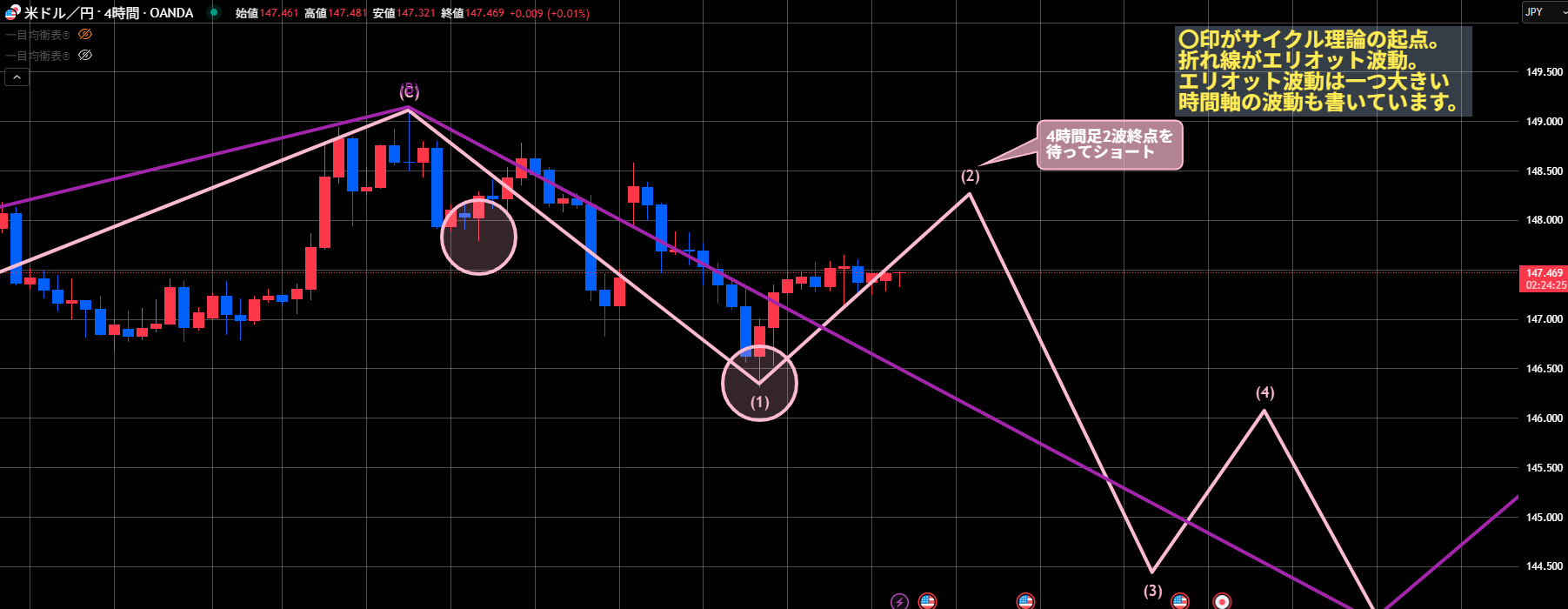 りんのマリンブルーFXでは「サイクル理論」と「エリオット波動」を使って相場分析をしています。