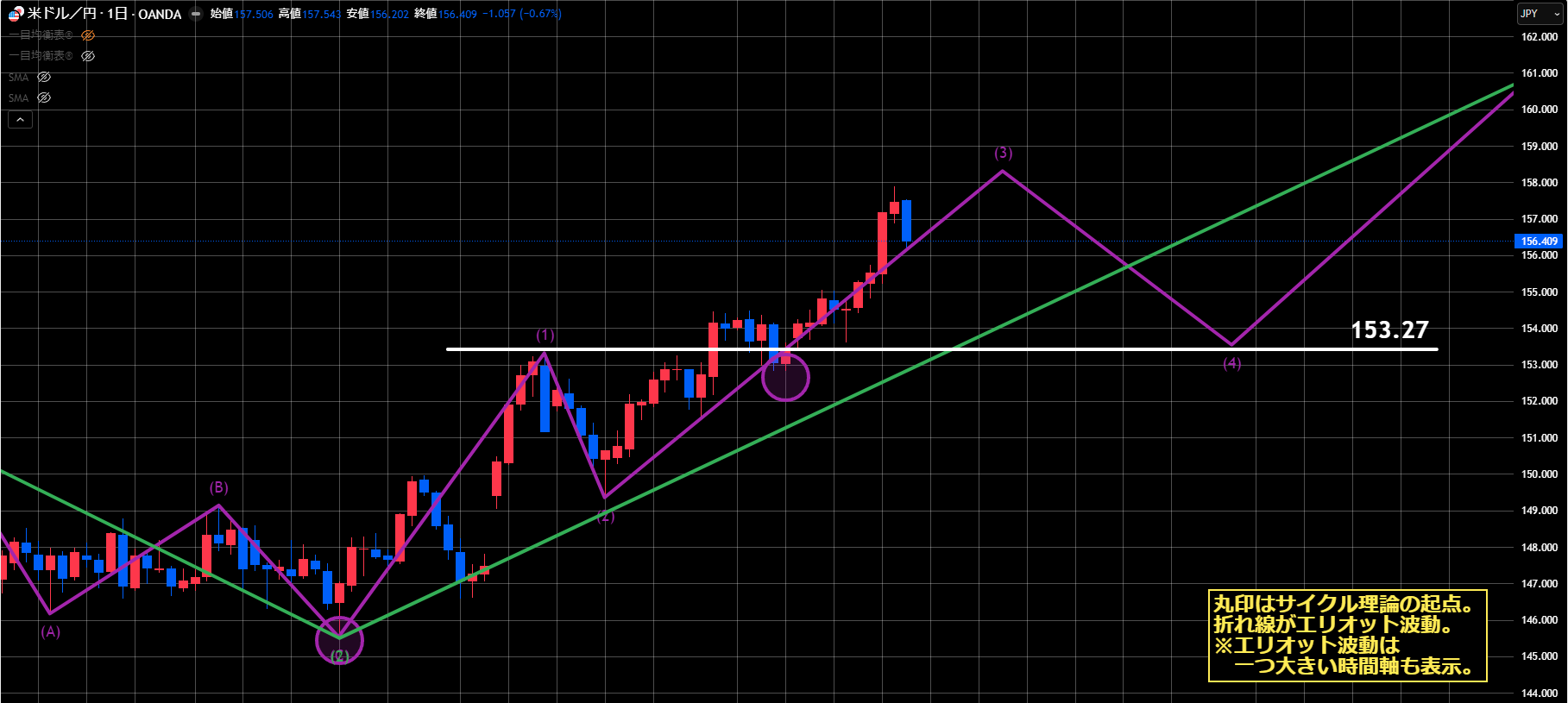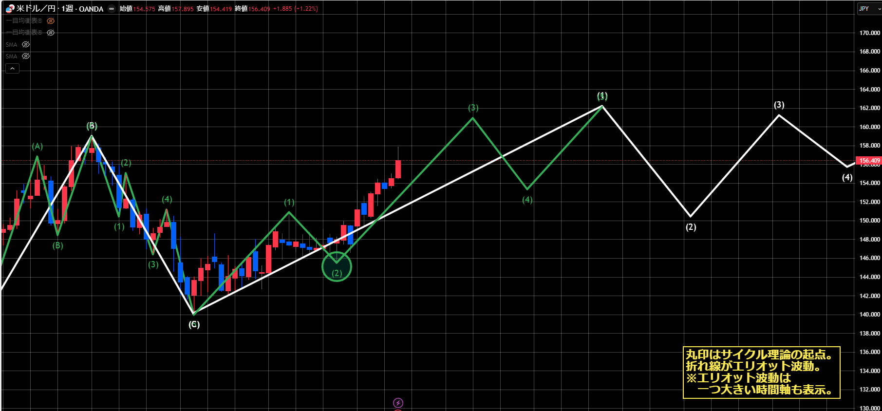 ただしこれは、サイクル理論単体で見た時には成り立ちますが、エリオット波動と合わせてみると、ちょっと微妙な部分も出てきます。