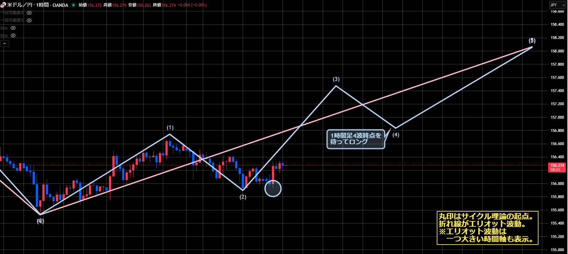 ただ、155.91を割ってきたら2波継続になるので、2波終点からロングも面白いかもしれません。