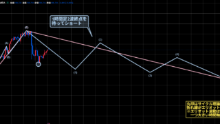 4時間足 <サイクル理論> 7本目・・・起点157.51で直近高値7本目159.39 16本目・・・起点158.57で直近高値4本目159.90 既に起点割れを起こしていて、レフトトランスレーションが確定しています。 ...
